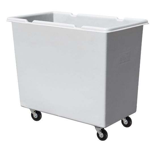 Depending on the model, the polyethylene box is fixed on a plywood or steel base. The carts can be equipped with a corner or diamond pattern casters. Consider the best caster pattern for your application.  All swivel casters are best for tight areas but they do not travel long distances well.  Diamond pattern turns easiest and travels long distances well. Corner pattern gives you the most stability for safety with heavy loads and travels long distances as well.